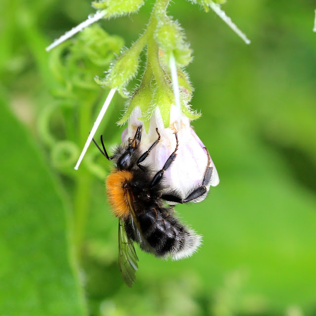 If you look carefully you will see that on some comfrey plants every flower has a tiny hole bitten in the side.