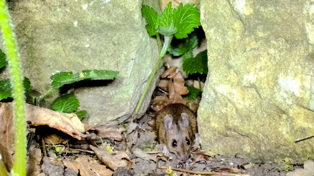 This is a short video from last year. I was surprised to find I haven't posted it here before but I expect I was distracted by all the fox and otter activity last summer. Last spring I found gap in a pile of stones in the copse that was regularly used by small mammals. The trail camera recorded bank vole, common shrew and water shrew, all of which I have posted before, but also this wood mouse. Wood mice are mostly nocturnal and this recording was made during the night. The surprising thing is that the mouse ignored the sudden bright white LED lights from the Wingscapes BirdCam Pro and carried on eating. More recently I posted another nocturnal video of a wood mouse recorded on the same camera and again the mouse ignored the lights.