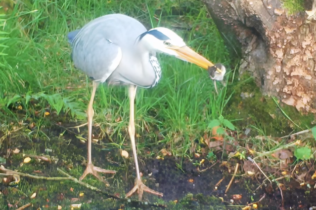 I have a new waterside trail camera position, taking advantage of a newly fallen branch, the only drawback being that I now need waders to reach the camera. Having cameras watching the water's edge occasionally throws up a real surprise, as with this one. I haven't had good video of a heron before, mainly because they are so close to the cameras that they don't fit in the frame.